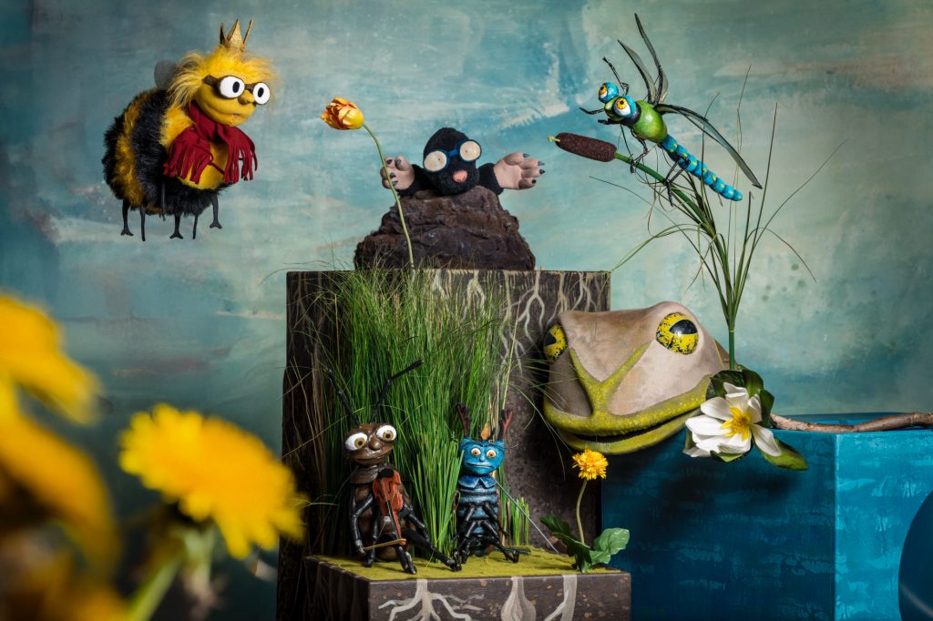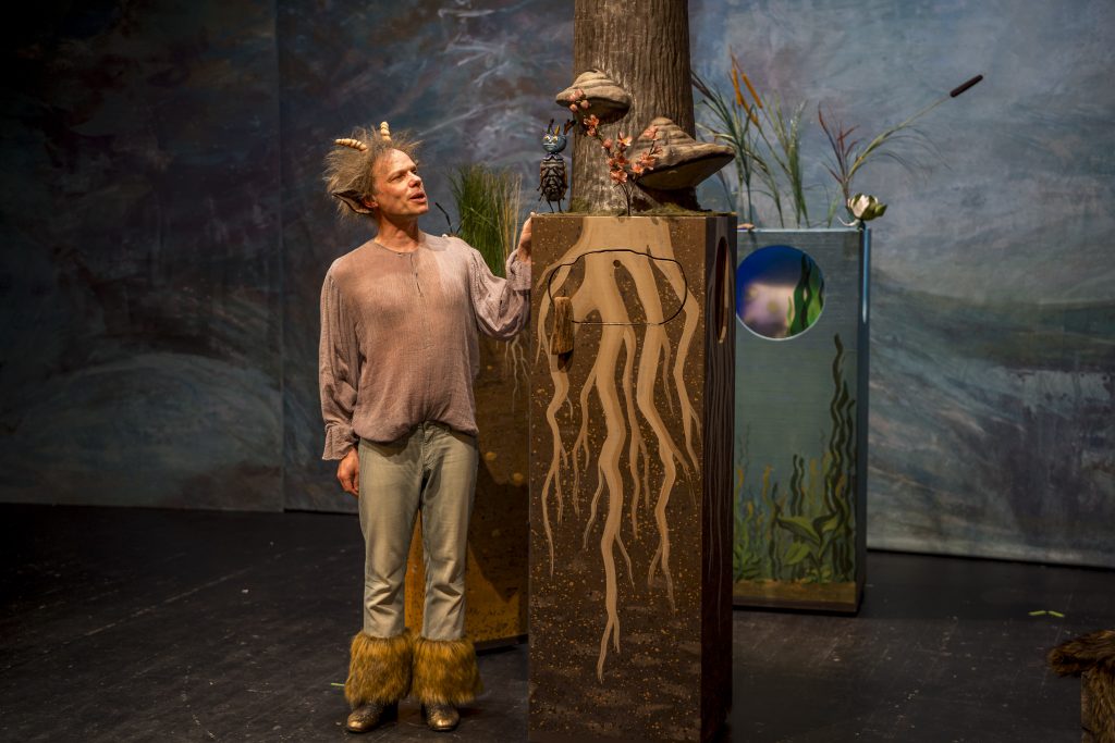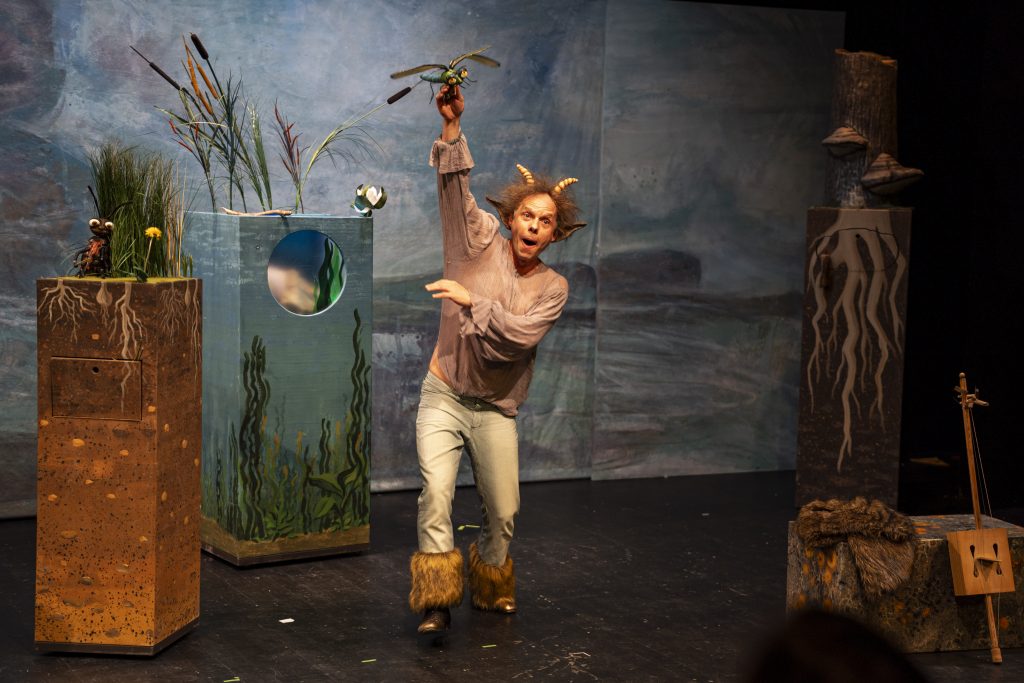 Bühnenbild, Kostümbild, Figuren | Gesamtausstattung nach eigenen Entwürfen | für DER FABELHAFTE GARTEN DES FUSSELKOPF SENFKORN (Regie: Gabriele Hänel) am Deutsch-Sorbischen Volkstheater Bautzen | Dezember 2024 – April 2025 | diverse Materialien