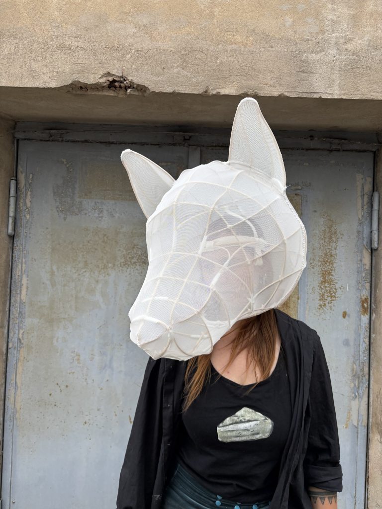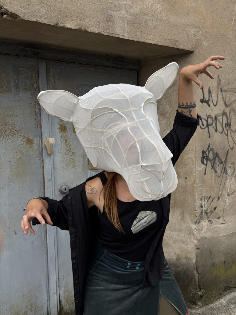 Kostümplastiken | Kooperationsprojekt mit Paul Fenk | nach eigenem Entwurf | Konzept: Andrea Eisensee | für DER WEG DES ORPHEUS (Regie: Kay Kuntze) am Theater Altenburg Gera | Juni – August 2025 | Peddigrohr, Gurtband, Stretch-Mesh